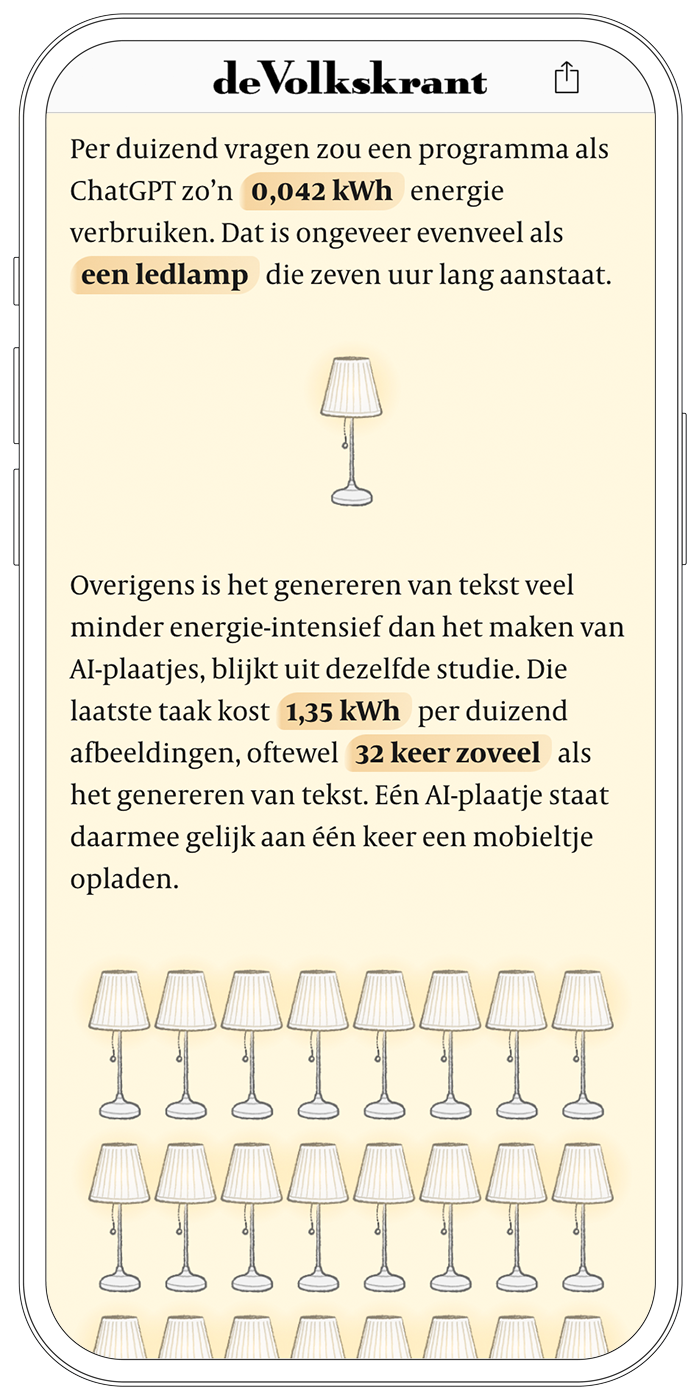 "How did your neighborhood vote on November 22?" and "How much water and energy does your favorite chatbot use?" (animated in online version)